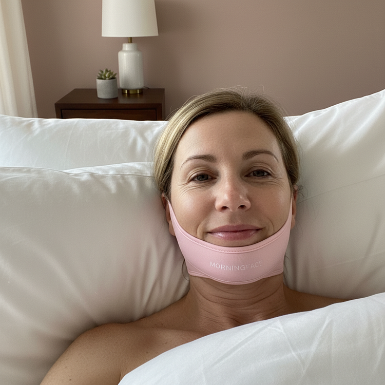 Slip on The Face Sculptor by MorningFace before bed and watch facial sagging and puffiness melt away overnight. Experience gentle lymphatic drainage and jaw support for a defined contour with every sunrise.